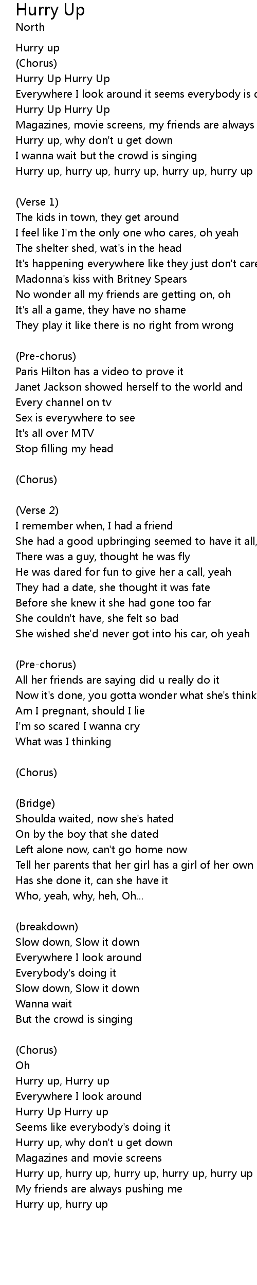Hurry up, hurry up, hurry up, hurry up, hurry up |