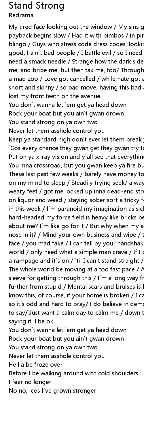 | You inna crossroad, but you gwan keep ya fire burning it won´t get cold | |