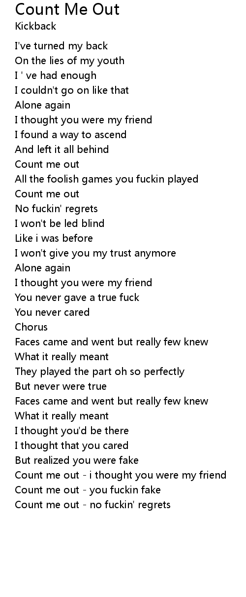 | Count me out - i thought you were my friend | |