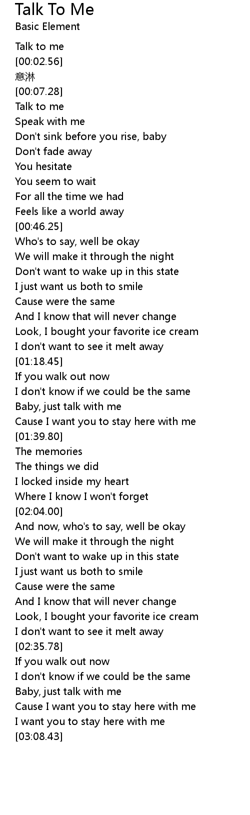 | [00:01.61] | Talk to me |