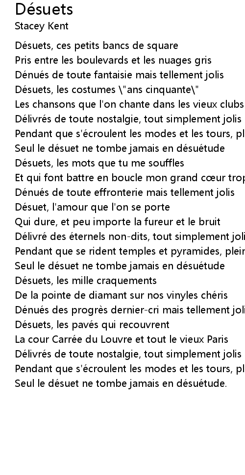 | Les chansons que l' on chante dans les vieux clubs jazzy | |