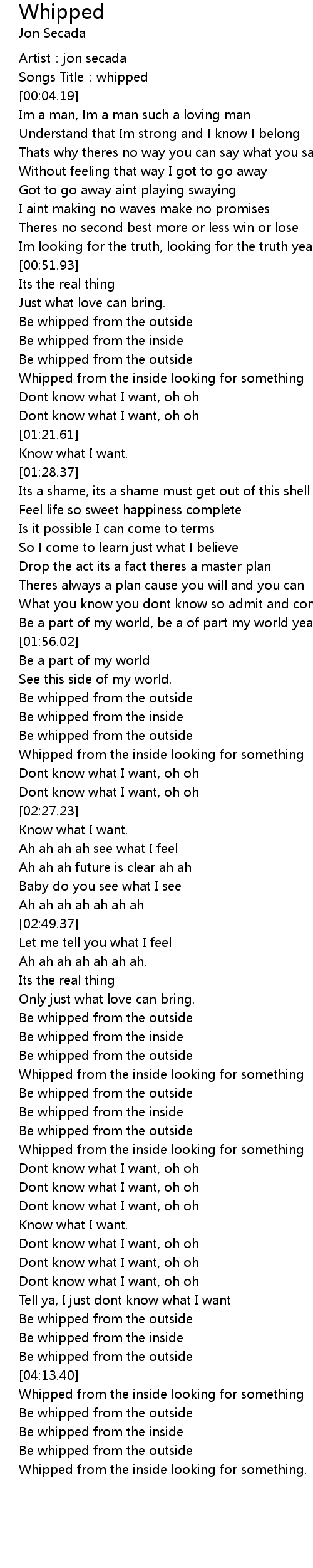 | [00:02.89] | Songs Title:whipped |