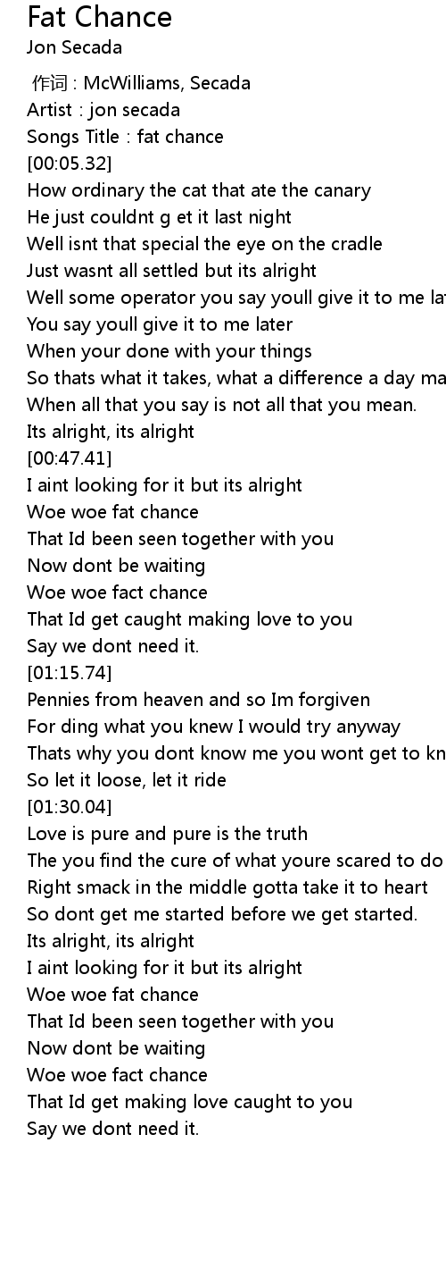 | [00:03.34] | Songs Title:fat chance |