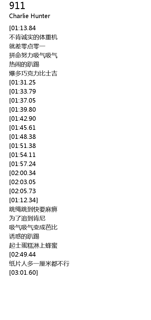 | [00:38.94][01:37.05] | 快Call 911 |