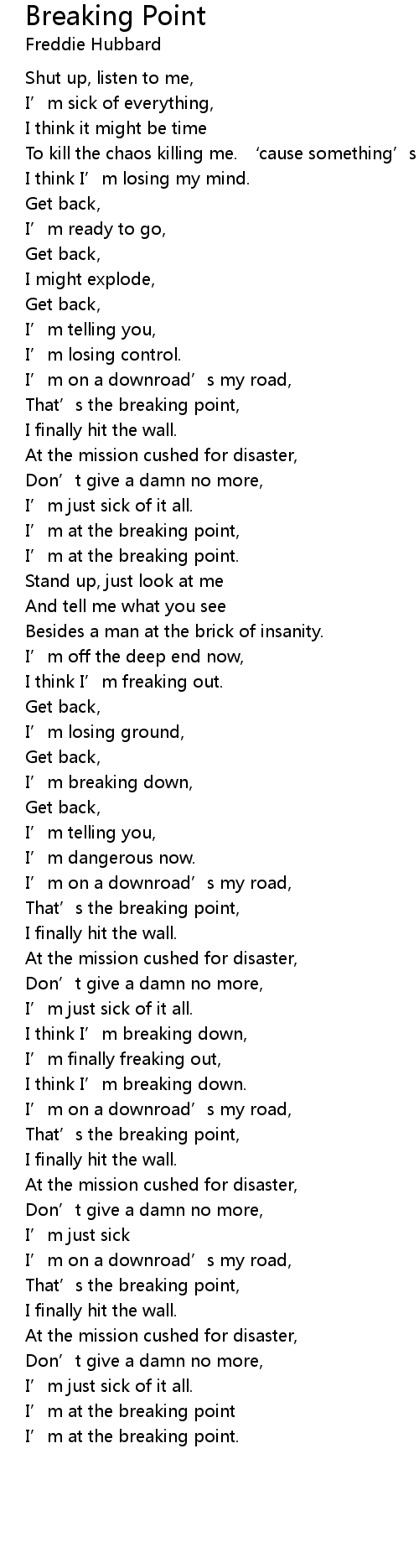 | I’m at the breaking point, | |