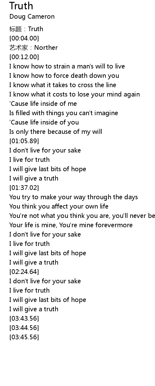 | [02:03.85] | I live for truth |
