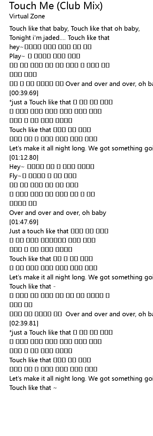 | [00:00.00] | Touch like that baby, Touch like that oh baby, |