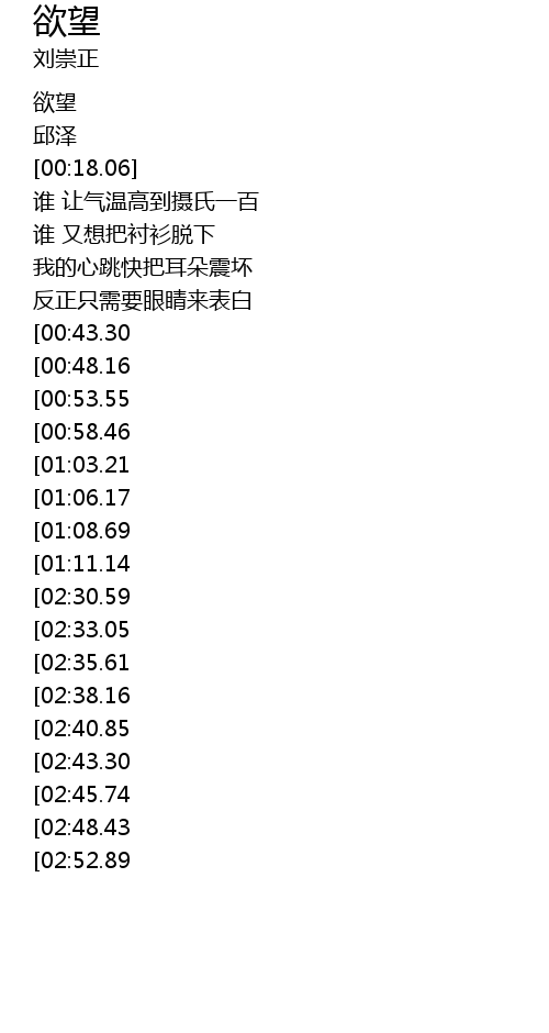 | [02:53.67][02:30.59][01:16.43] | 我的欲望命令我呼吸 |