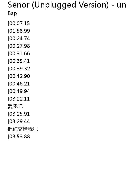 | [03:38.94][03:22.11][03:07.59][02:23.96][02:08.98][01:38.02][00:53.00] | Senorita ài wǒ ba |