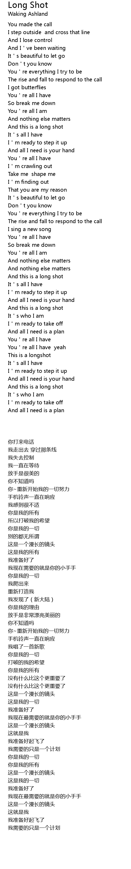 | 歌曲 | Long Shot |