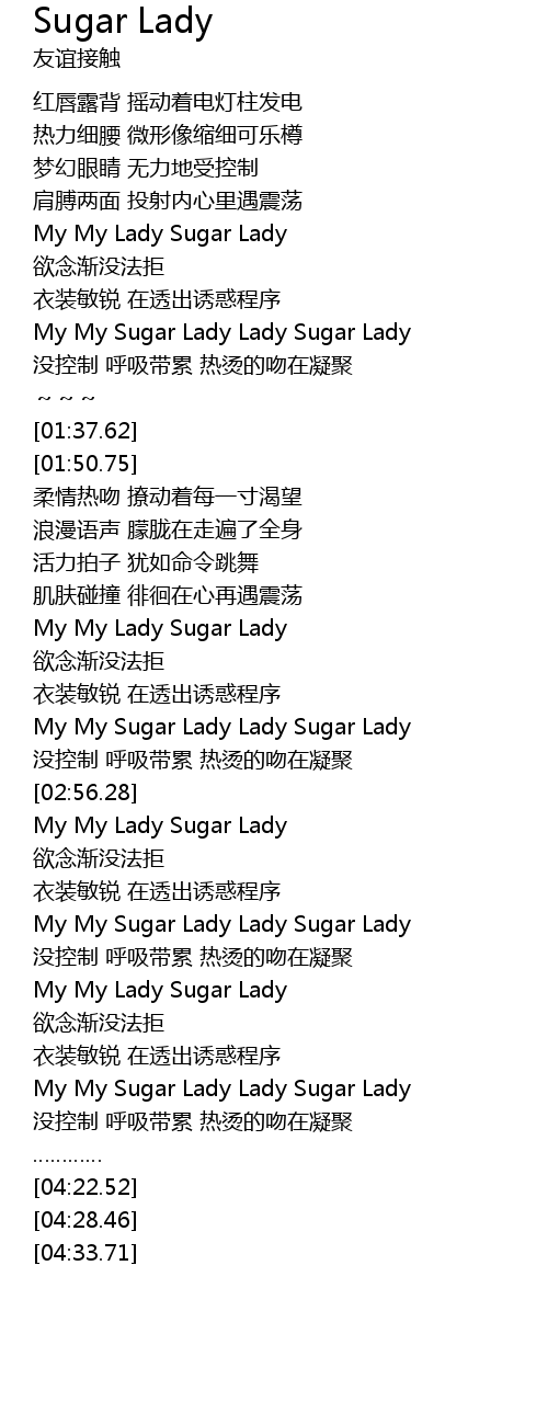 | [03:29.72] | My My Sugar Lady Lady Sugar Lady |