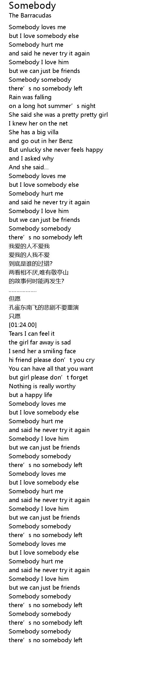 | [01:00.56] | Somebody somebody |