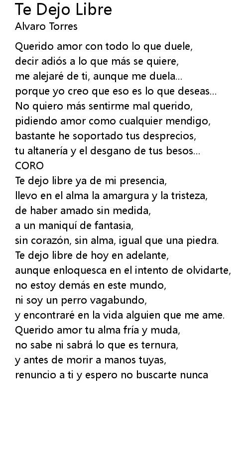 | 歌曲 | Te Dejo Libre |