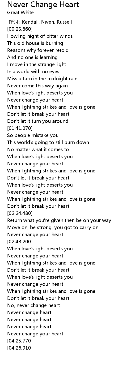 | [00:00.00] | 作词 : Kendall, Niven, Russell |