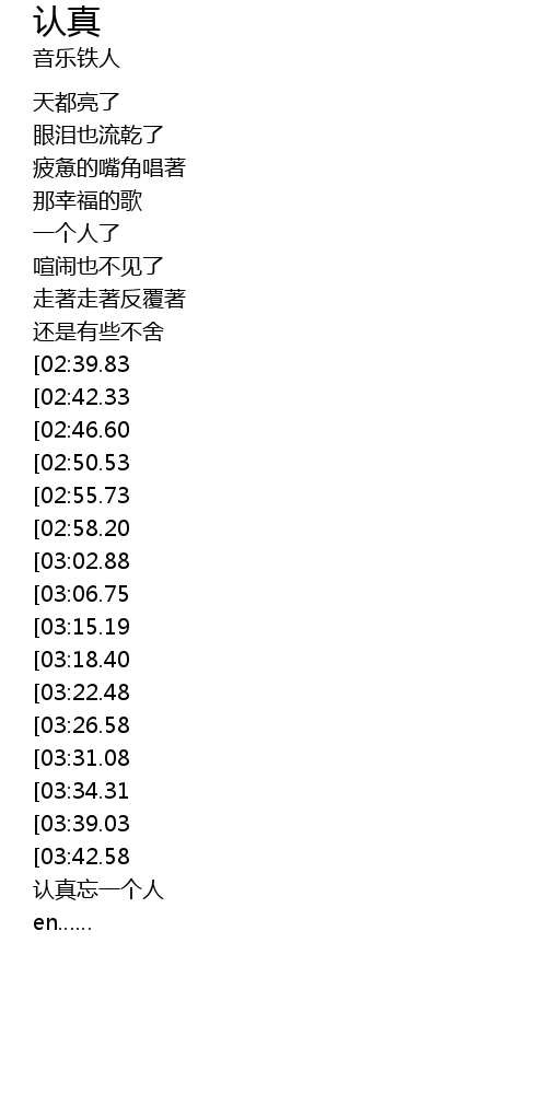 | [02:03.51][03:31.08] | 想认真忘一个人 |