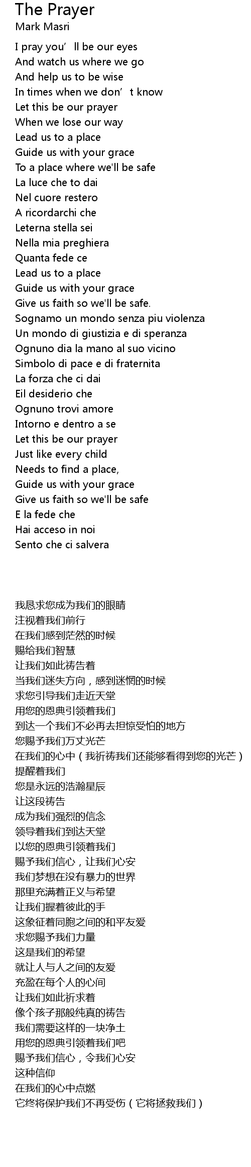 | 歌曲 | The Prayer |