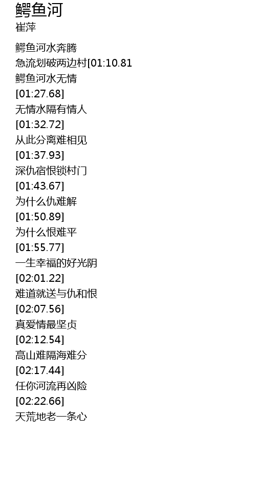 | [01:06.35]急流划破两边村[01:10.81]你去河南我河北[01:16.45] | 隔河好比隔恒星 |
