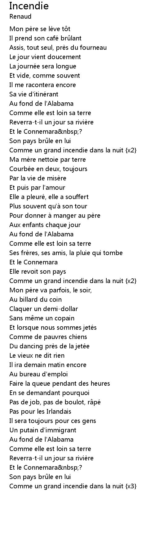 | 歌曲 | Incendie |