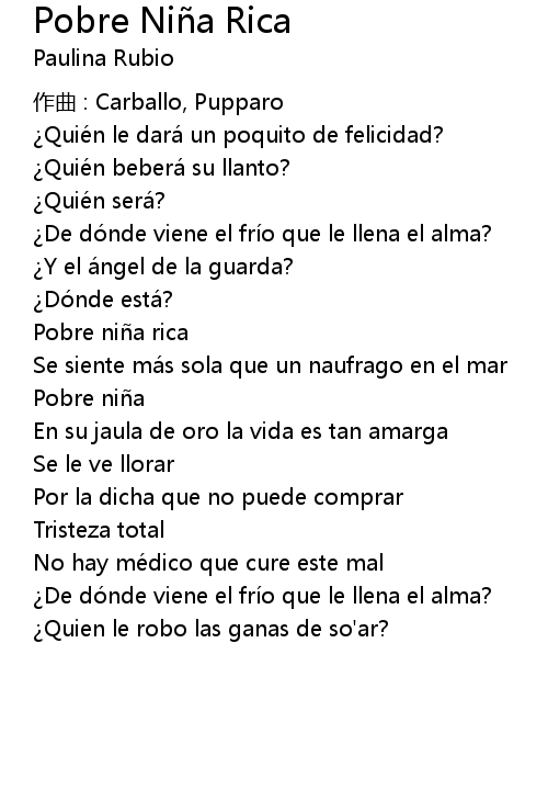 | 歌曲 | Pobre Niña Rica |