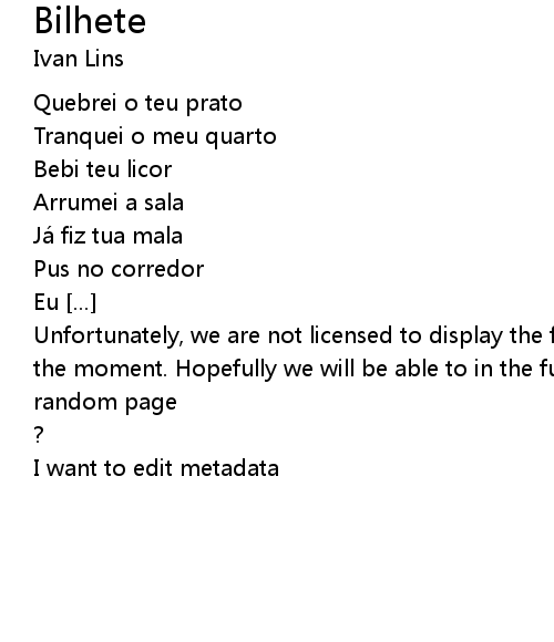 | 歌曲 | Bilhete |