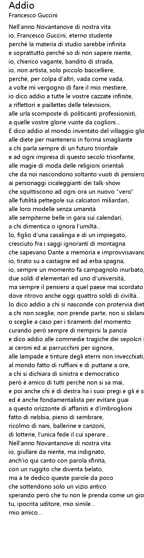 | Io dico addio a chi si nasconde con protervia dietro a un dito, | |