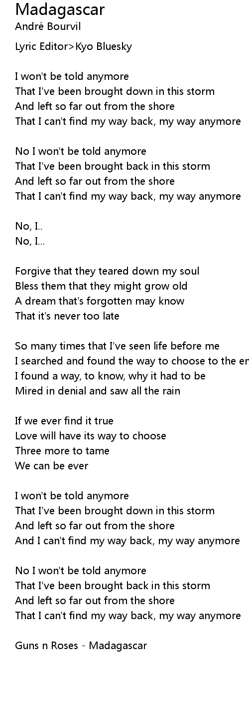 Madagascar 歌词
