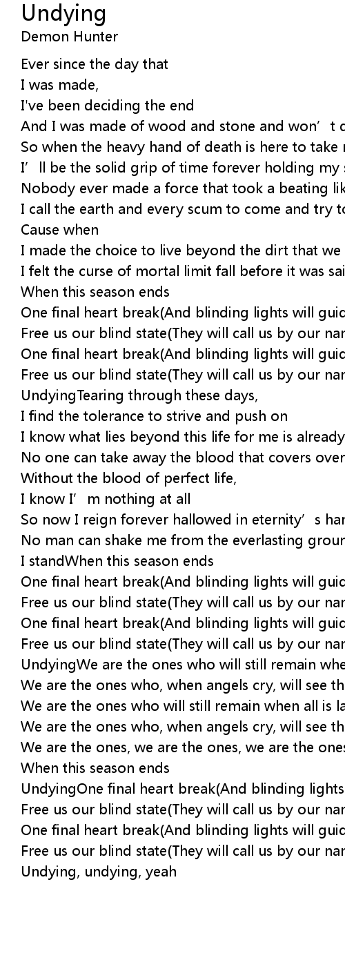 | UndyingOne final heart break And blinding lights will guide our way | |