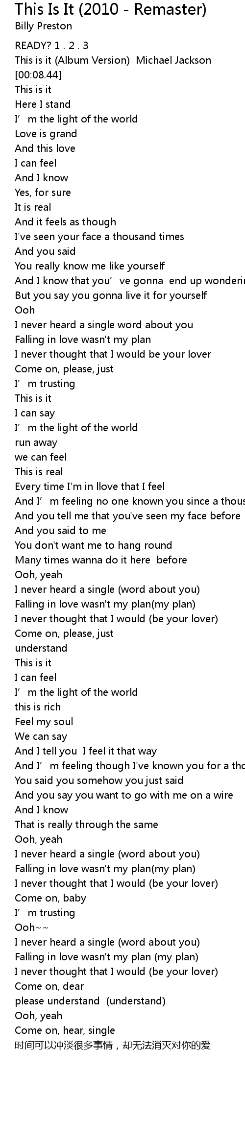 | [00:05.00] | This is it Album Version Michael Jackson |