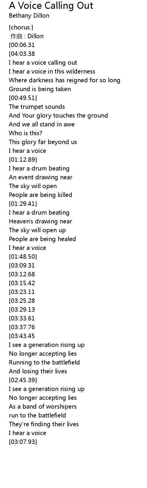 | [03:05.23] | I hear a voice |