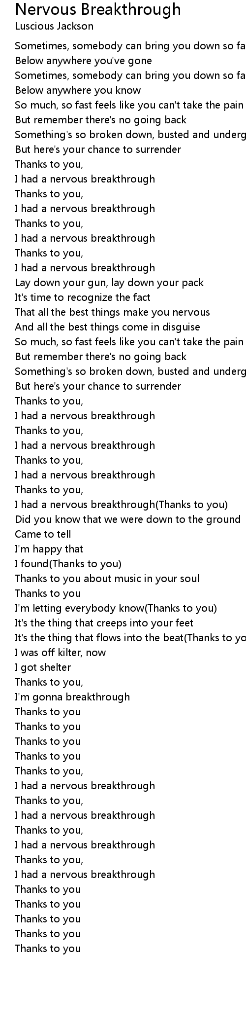 I had a nervous breakthrough(Thanks to you) |