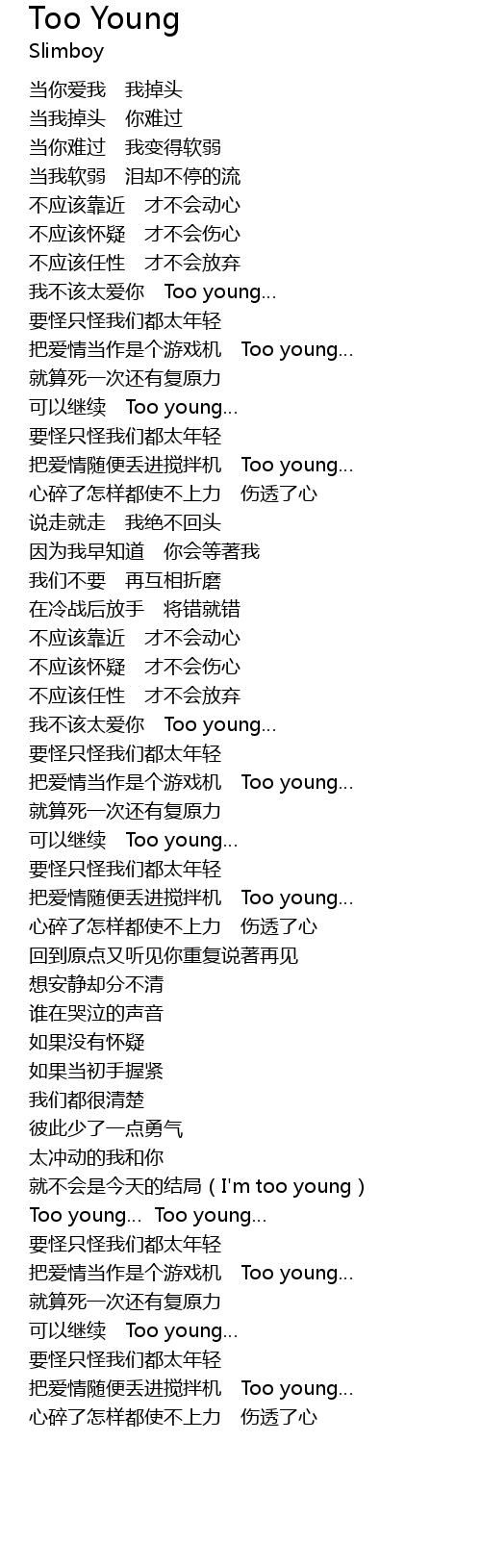 | [02:15.58] | 把爱情随便丢进搅拌机 Too young… |