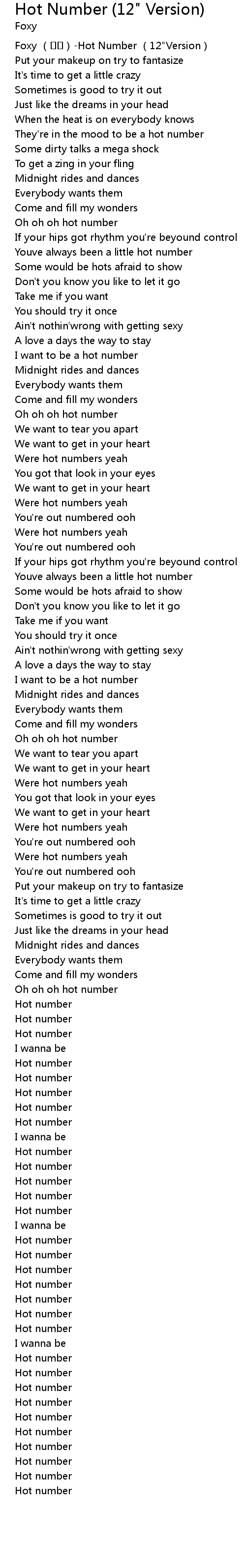 | [00:00.413] | Foxy Hot Number 12" Version |