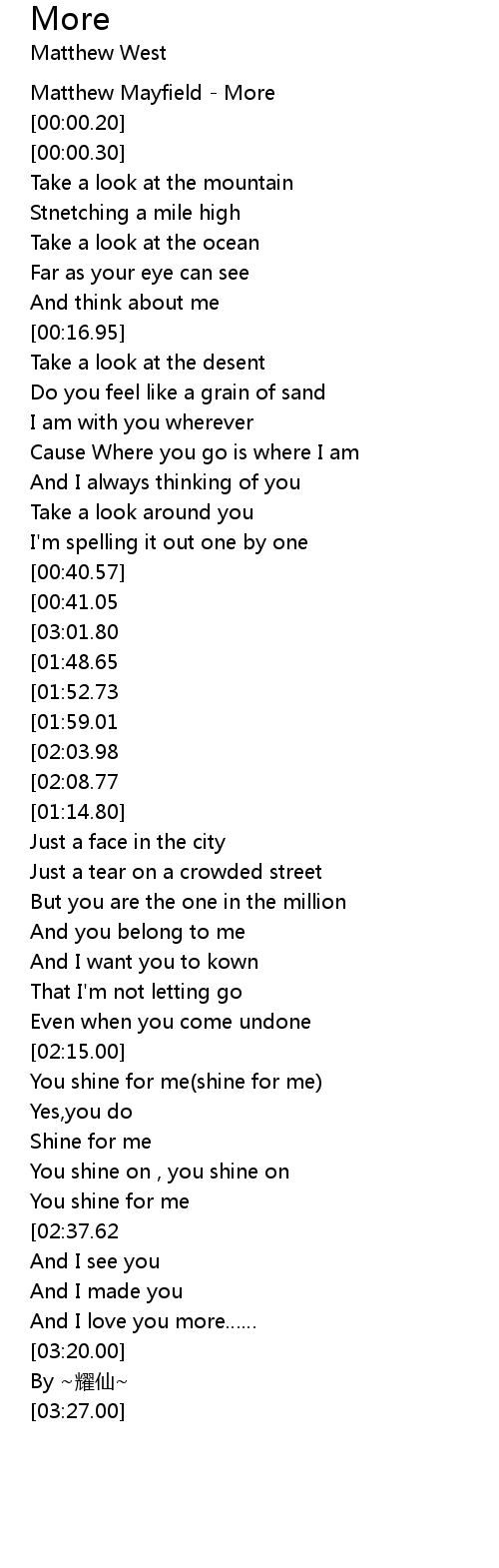 | [02:59.90][02:03.98][01:03.80] | I love you more |