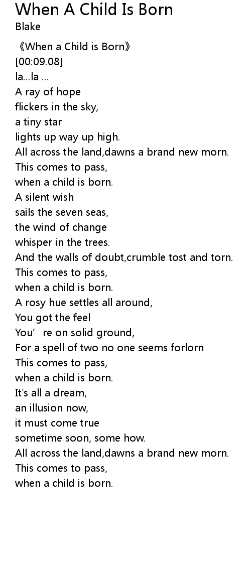 | [00:03.31] | 《When a Child is Born》 |