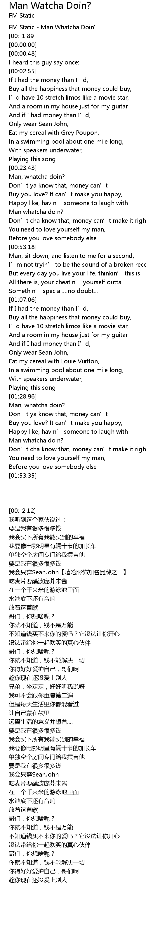 | [00:-2.12] | FM Static Man Whatcha Doin' |