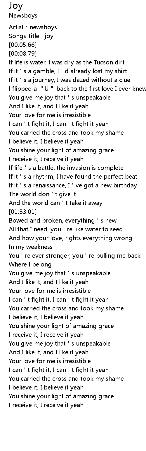 | [03:02.86] | You give me joy that s unspeakable |