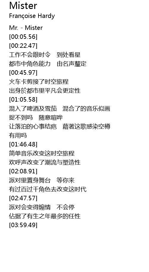 | [00:01.48] | Mr. - Mister |