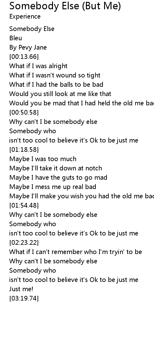 | [02:45.78] | Why can t I be somebody else |