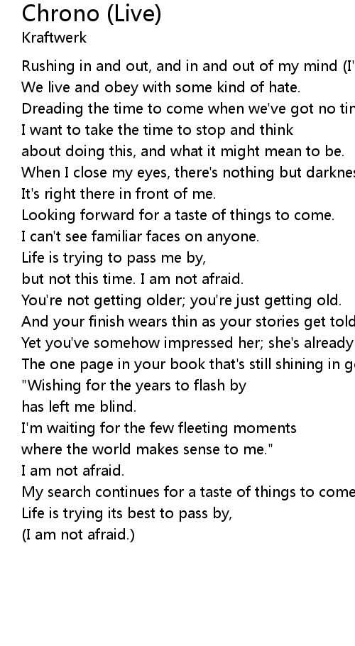 | Dreading the time to come when we've got no time at all. | |