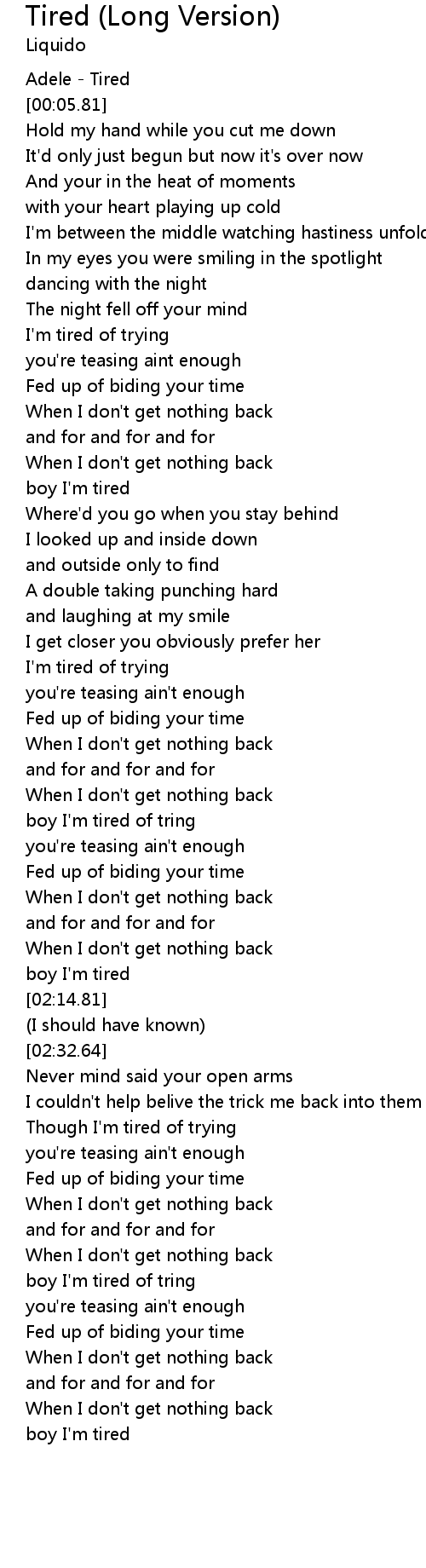 | [00:03.11] | Adele - Tired |