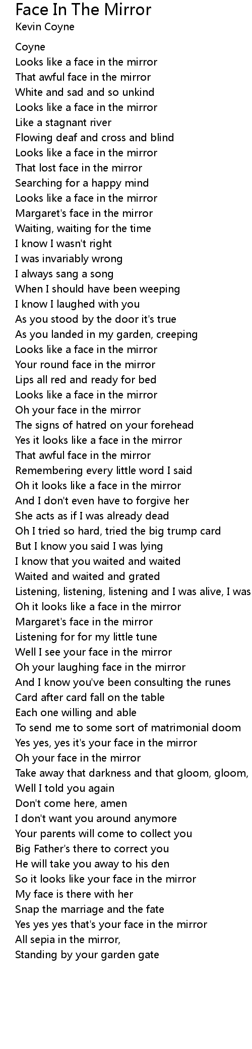 Well I see your face in the mirror |