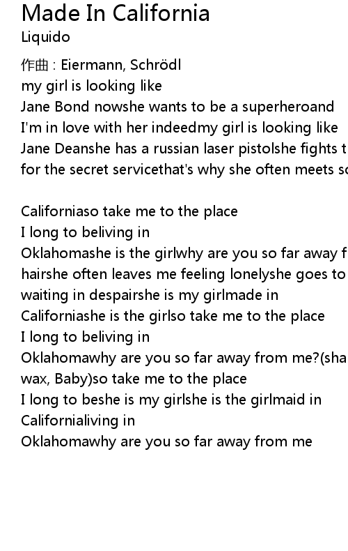 | Californiashe is the girlso take me to the place | |