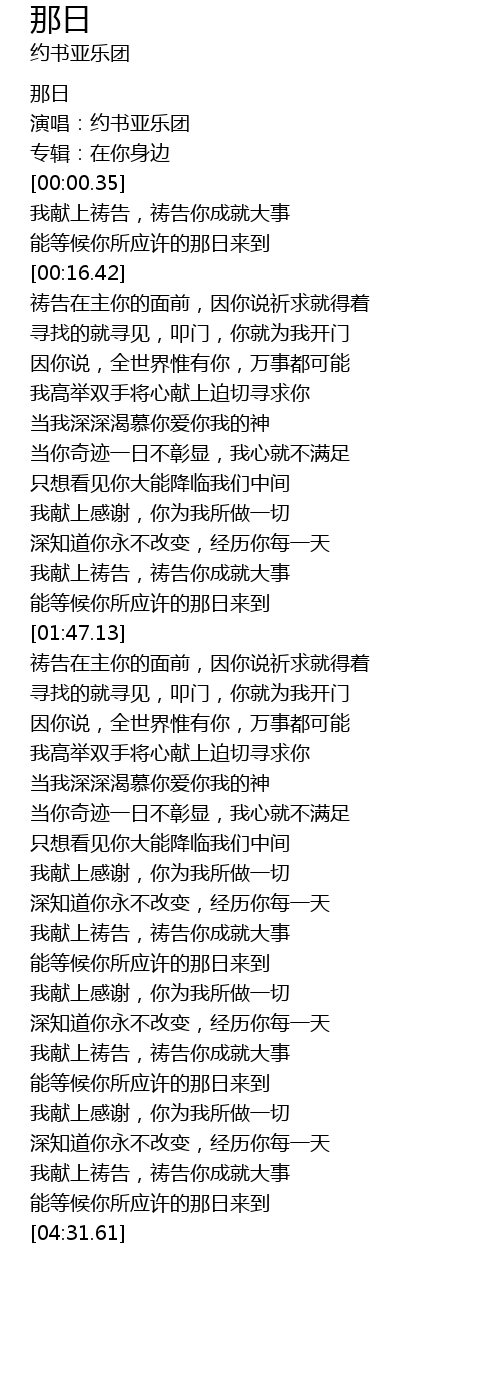 | [02:37.81] | 当你奇迹一日不彰显,我心就不满足 |