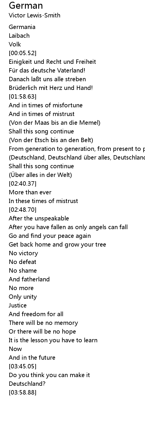 | [02:33.51] | Deutschland, Deutschland ü ber alles, Deutschland |