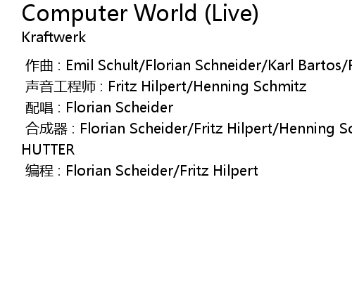 | [00:00.000] | zuo qu : Emil Schult Florian Schneider Karl Bartos RALF HUTTER |