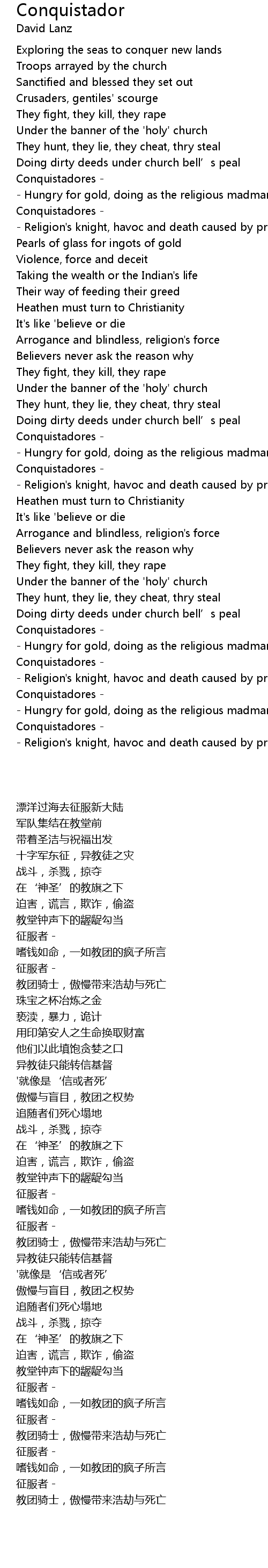 | [03:47.010] | Hungry for gold, doing as the religious madman told |