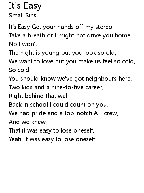 | It's Easy Get your hands off my stereo, | |