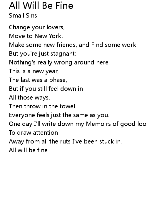 | 歌曲 | All Will Be Fine |