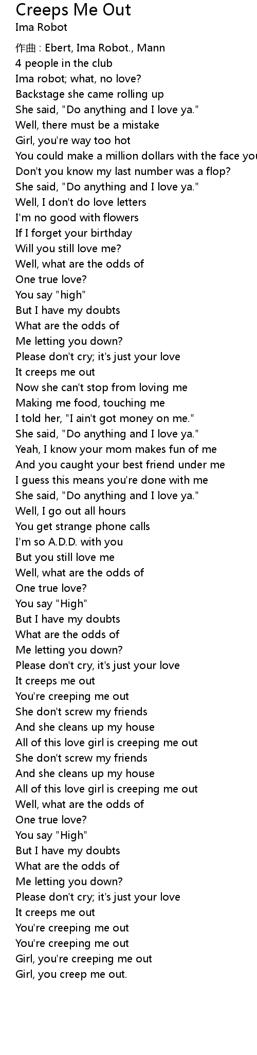 | 歌曲 | Creeps Me Out |
