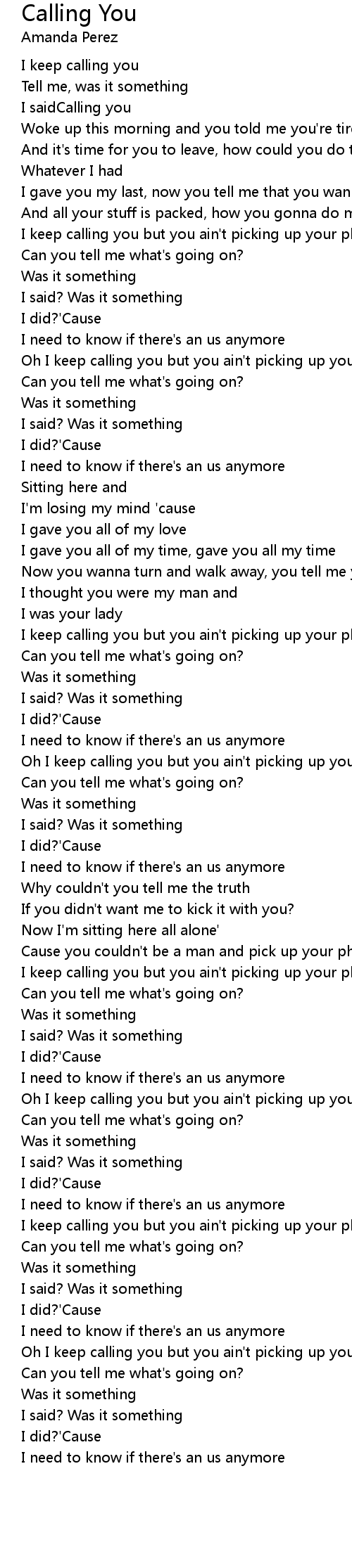 Oh I keep calling you but you ain't picking up your phone |